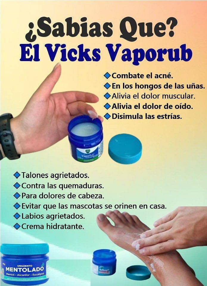 El Vicks VapoRub es un ungüento mentolado ampliamente conocido por su efectividad en aliviar la congestión nasal y los síntomas del resfriado. Sin embargo, este producto también se ha convertido en un remedio casero popular para tratar dolores articulares, musculares y la inflamación en diversas partes del cuerpo, como la espalda y las rodillas. Gracias a su combinación de ingredientes activos, este ungüento proporciona un alivio rápido y natural sin efectos secundarios adversos.
