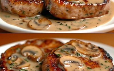 Filetes de Cerdo en Salsa Cremosa con Champiñones Ensalada Fresca