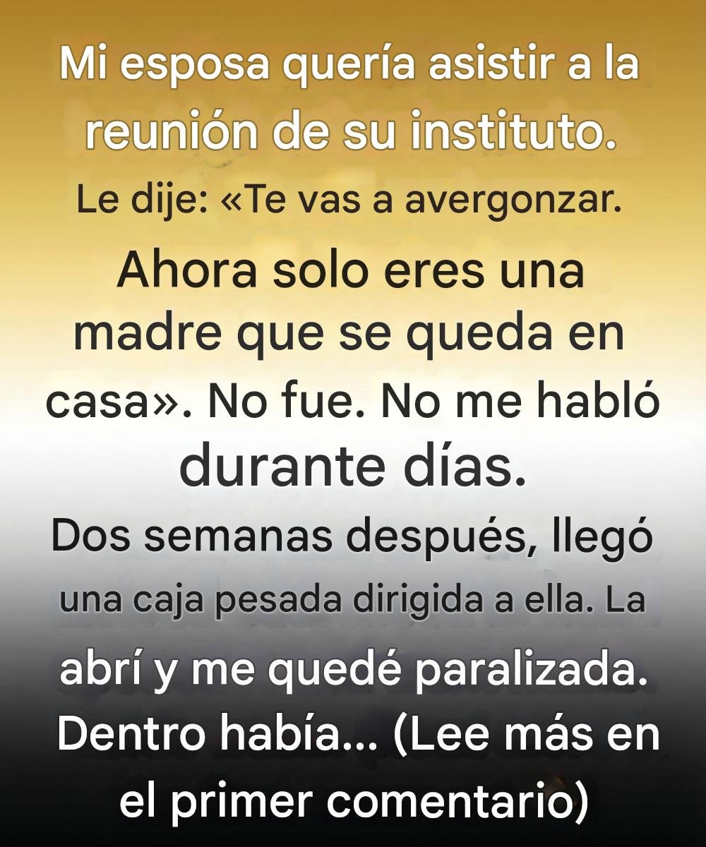 —¿De verdad quieres ir? —dije con tono ligero—. O sea... puede que sea incómodo. Ahora solo eres una madre que se queda en casa. Puede que te sientas fuera de lugar.