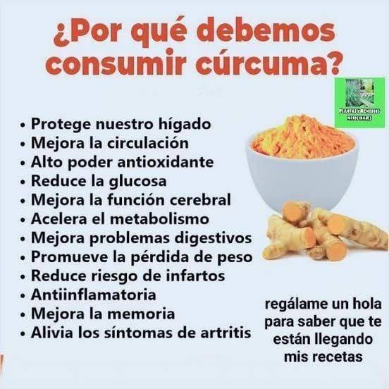 – Antiinflamatorio. Una cucharada de cúrcuma