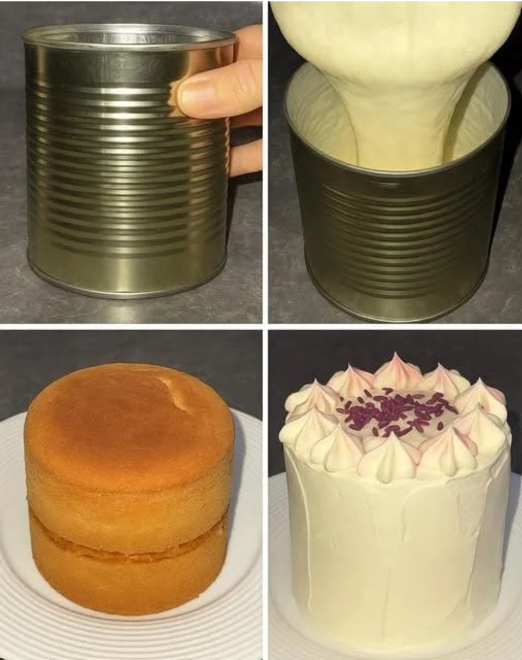 Amigos, hoy quiero compartirles una idea hermosa para que armen su primer pastel sin complicarse. Lo mejor de todo es que el bizcocho lo vamos a hacer con solo 3 ingredientes y usando una lata de durazno vacía como molde. ¡Sí, como lo escuchan! Queda súper esponjoso y con forma perfecta.